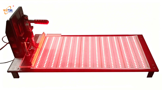 工装治具为非标定制,需根据LED灯条外形尺寸、灯珠型号及排列方式、正负极触点位置、额定供电电压及测试需求评估后报价(主体与针板可分开报价)。