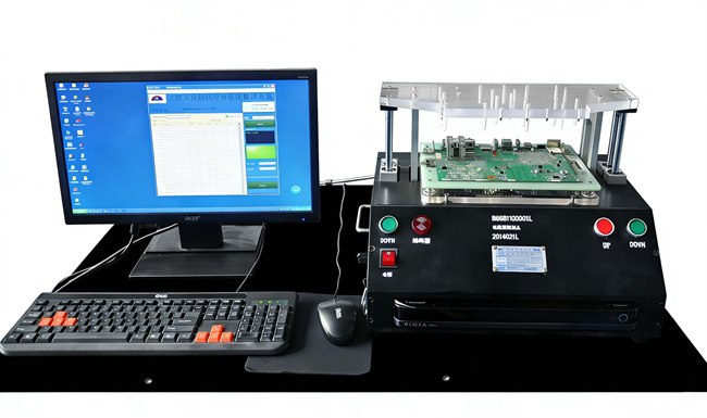 受益1:提升测试效率 —— 全自动测试+气动压合,单板仅需10-15秒,比人工快8-10倍。