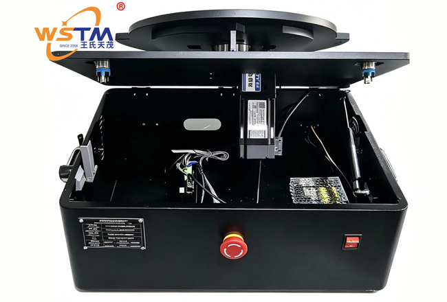 (4)安全区域确认:双手同时按下双金属按钮启动开关前,确认转盘周围无障碍物或人员肢体进入旋转范围,测试区域安全隔离措施已到位。